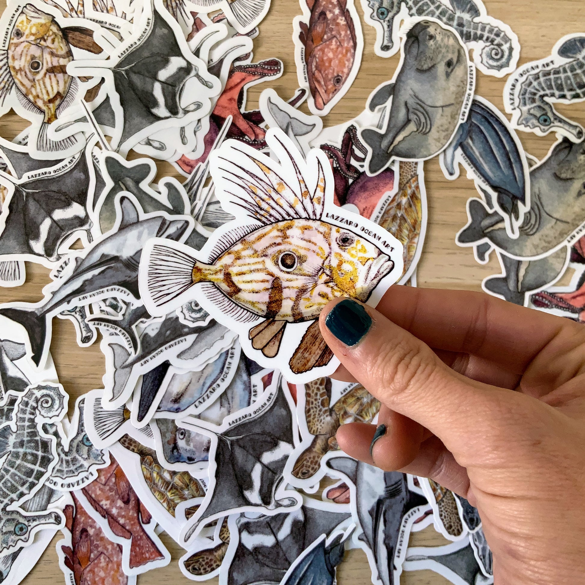 Collectionnez ces petites créatures et laissez-les ajouter une touche marine à votre quotidien. Pour toute commande contenant plus de trois stickers, le prix de chaque sticker passe à 2,50 (qu'il soit sur fond blanc ou transparent)